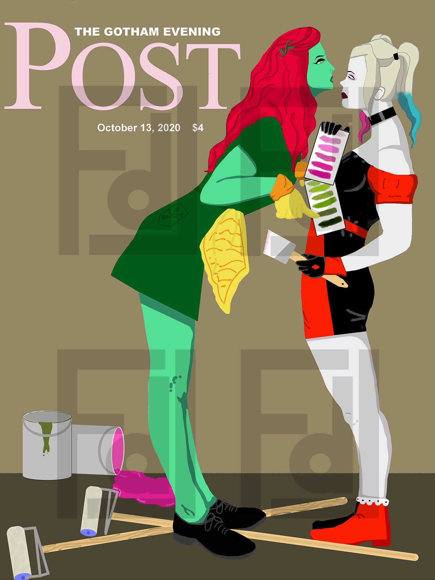 This drawing was inspired by a Saturday Evening Post cover of two young ladies fighting over a boy.
